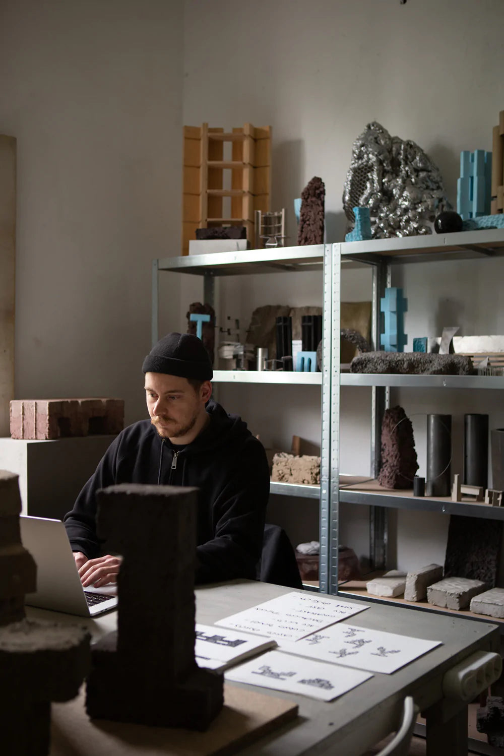 Bram Vanderbeke (1991) is a Ghent-based, Belgian designer. He graduated from the Design Academy (Eindhoven) in 2016, complementing a prior training in Interior Design at the Royal Academy of Fine Arts, Ghent. His practice is diverse but consistent and stands out for its material, sculptural and monumental qualities.