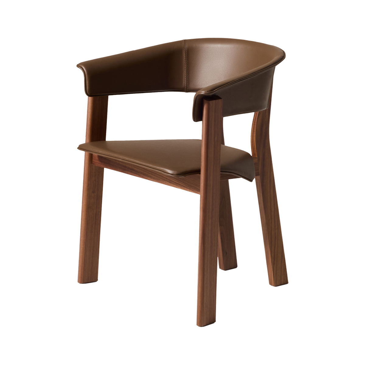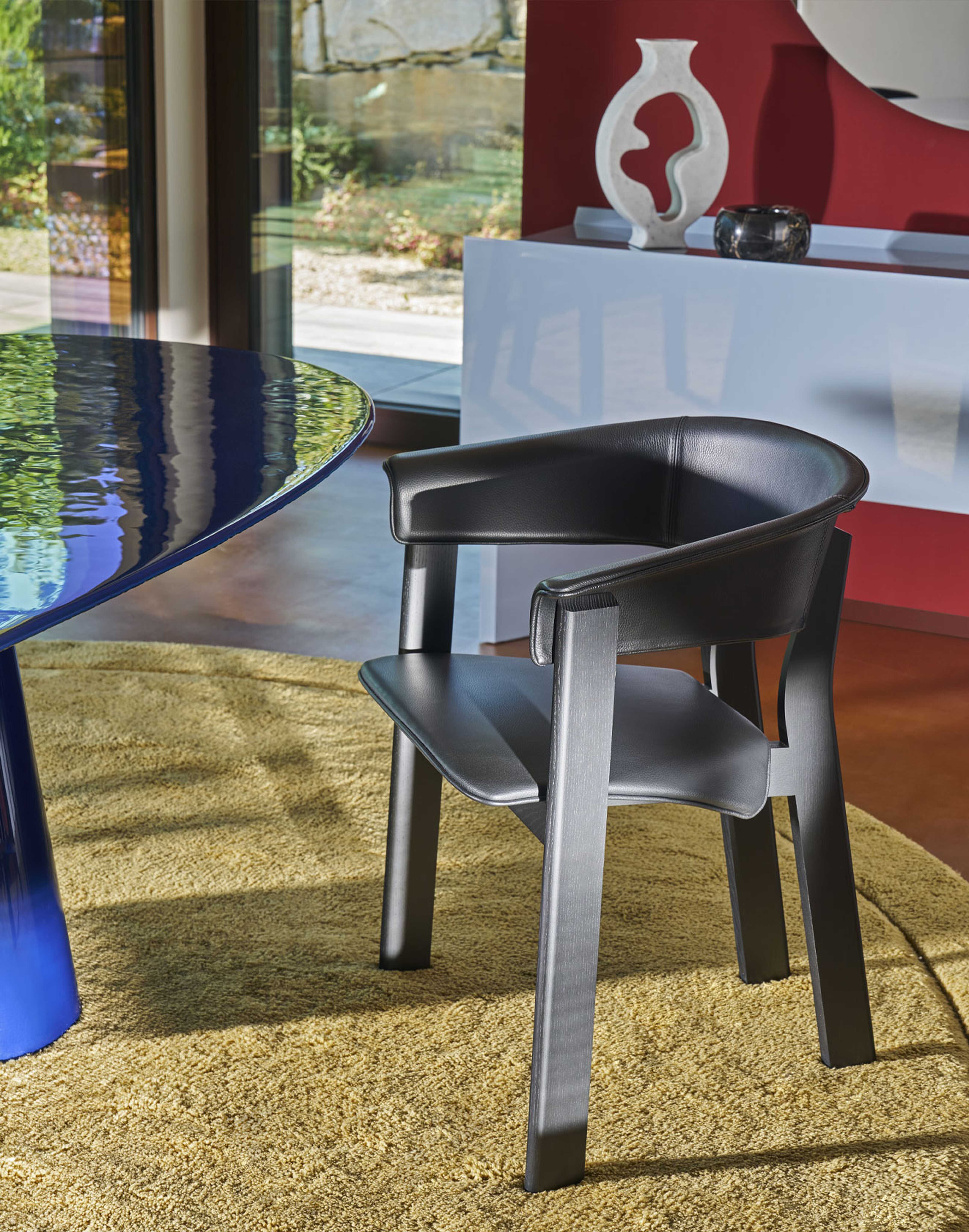 The aesthetic is completed through understated elegance: no visible seams, and a fine leather or fabric piping that traces the chair’s profile with clarity and restraint. The result is an armchair that feels both sculptural and inviting, where material presence, comfort, and fluid lines coexist in perfect balance.