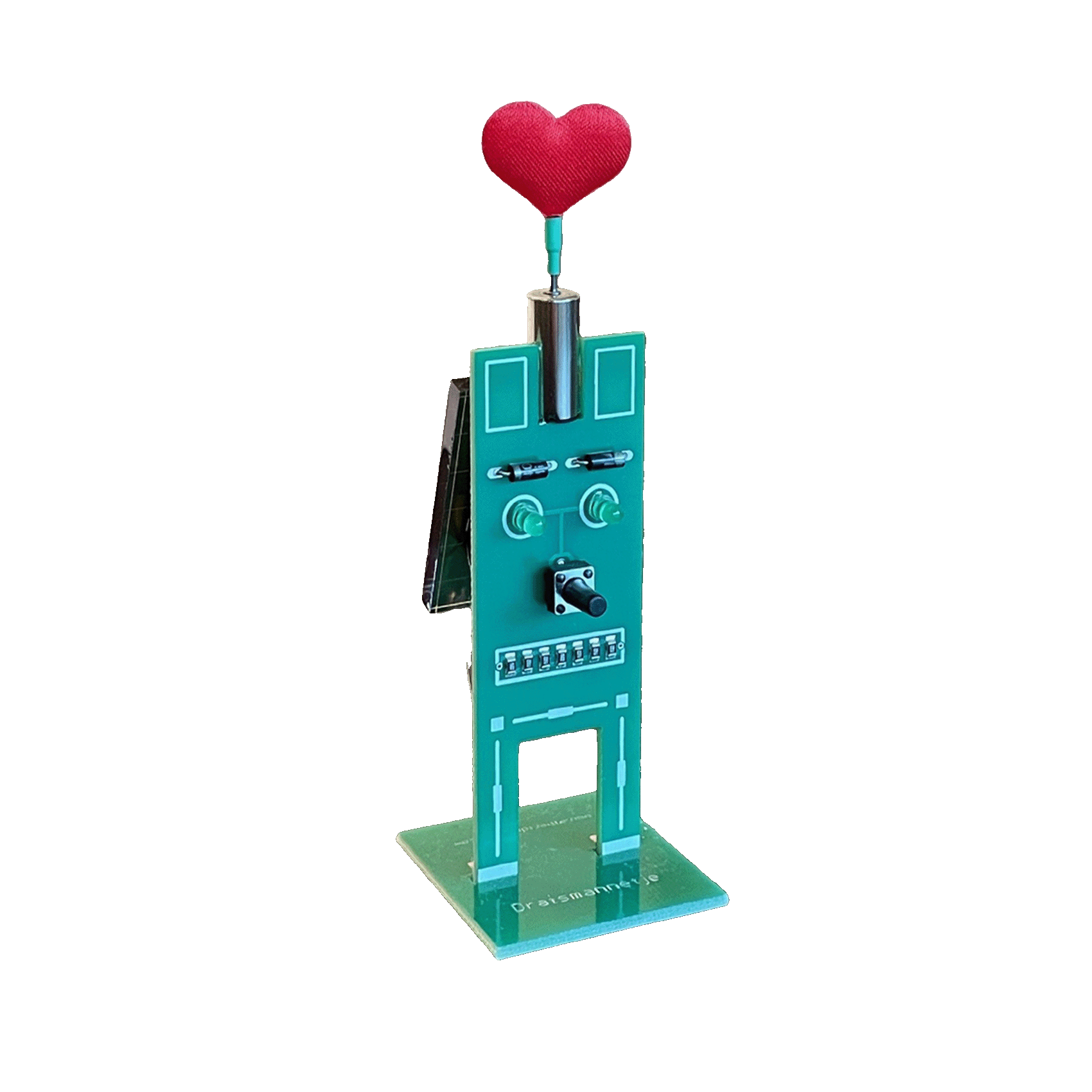 The Draismannetje turns a little hart around: the more light there is, the more often he will do it. And even when there is almost no light left, it continues to do so.