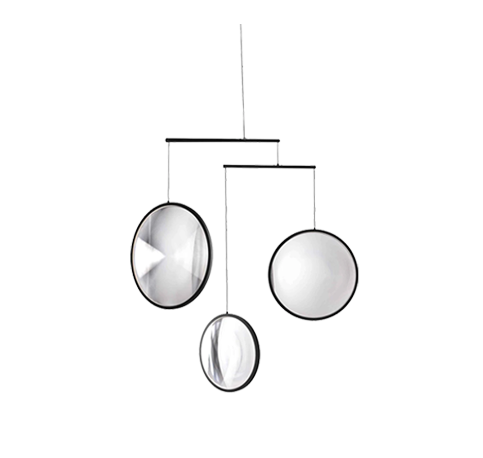 The chandelier is composed of 3 luminous discs in PMMA (acrylic glass).