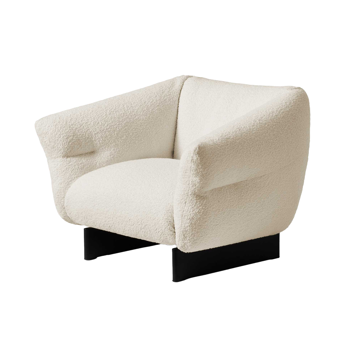 The wooden structure lifts the upholstered parts off the floor, giving the armchair the lightness of a cloud while emphasizing its soft, generous volumes. Quilted padding and enveloping upholstery enhance the sense of comfort while shaping its distinctive silhouette.