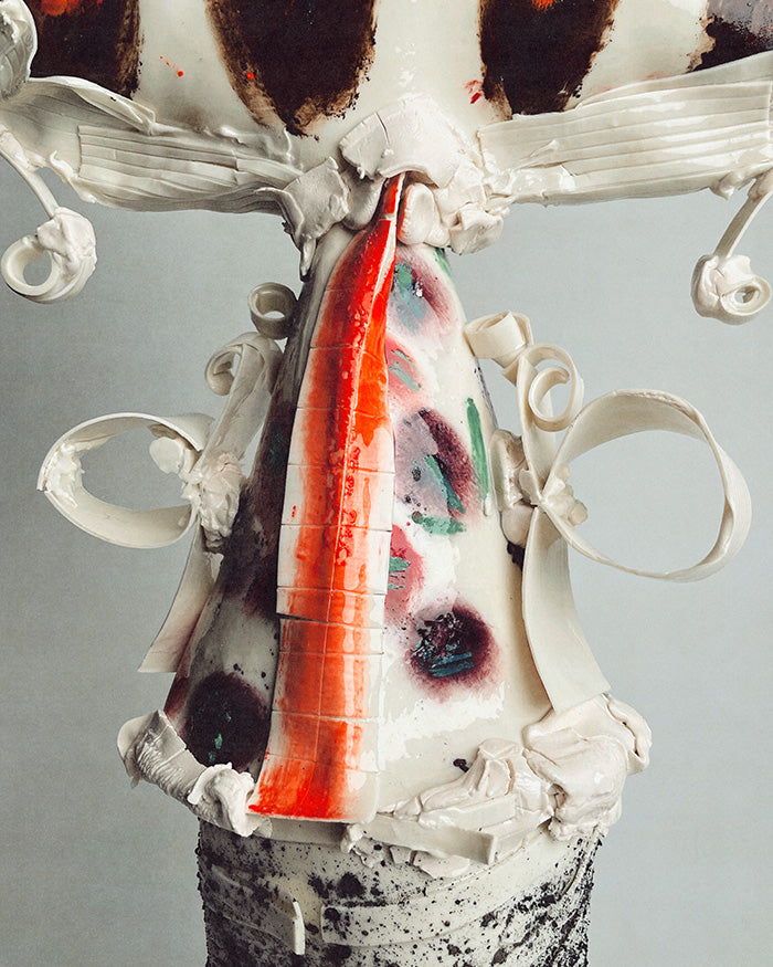 Danny Cremers (Netherlands, 1984) is an Amsterdam based designer. He works with hand-crafted porcelain. Originally trained in fashion design at Central Saint Martins (London), he explores classical forms through subtle imperfections. His vases embody a subtle tension between freedom and control, featuring textured surfaces and loosely constructed forms. In his work, he combines natural shades and pop colours, glazes and matte effects. Inspired by the energy of sketching - open, intuitive, without finality - he tries to capture that same immediacy in each finished piece.