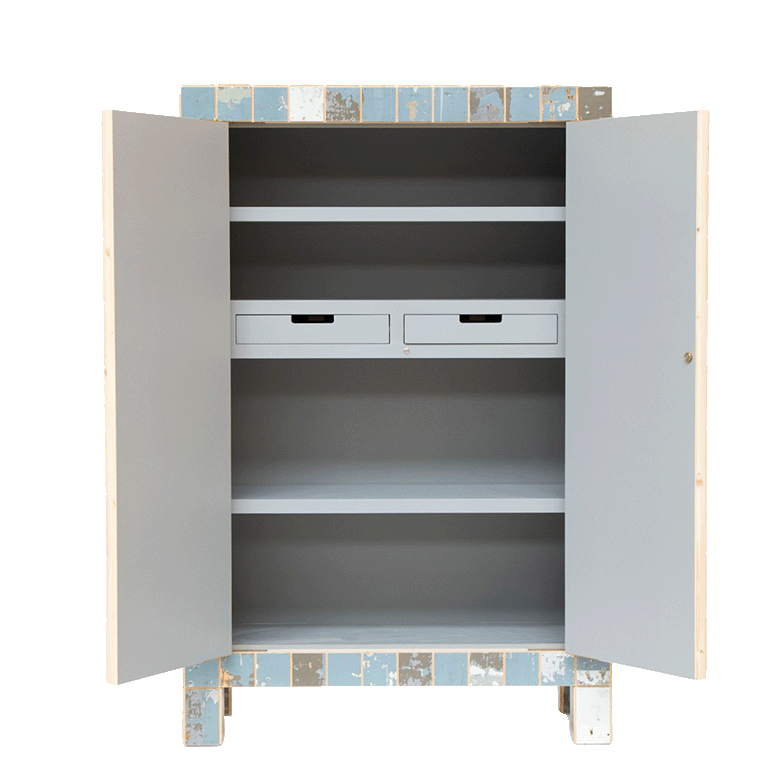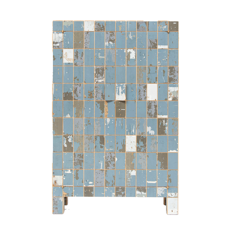 The Waste Tile Cabinet is meticulously crafted in Piet Hein Eek's studio using traditional wood-working technique. It shows his unique signature of recycled wood collage to a cabinet design of exceptional grace. Each cabinet is completed with a high gloss finish. The waste tile cabinets are all unique and numbered in it’s own series.